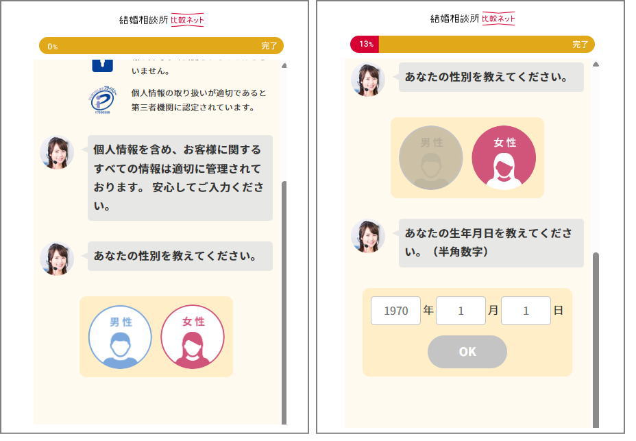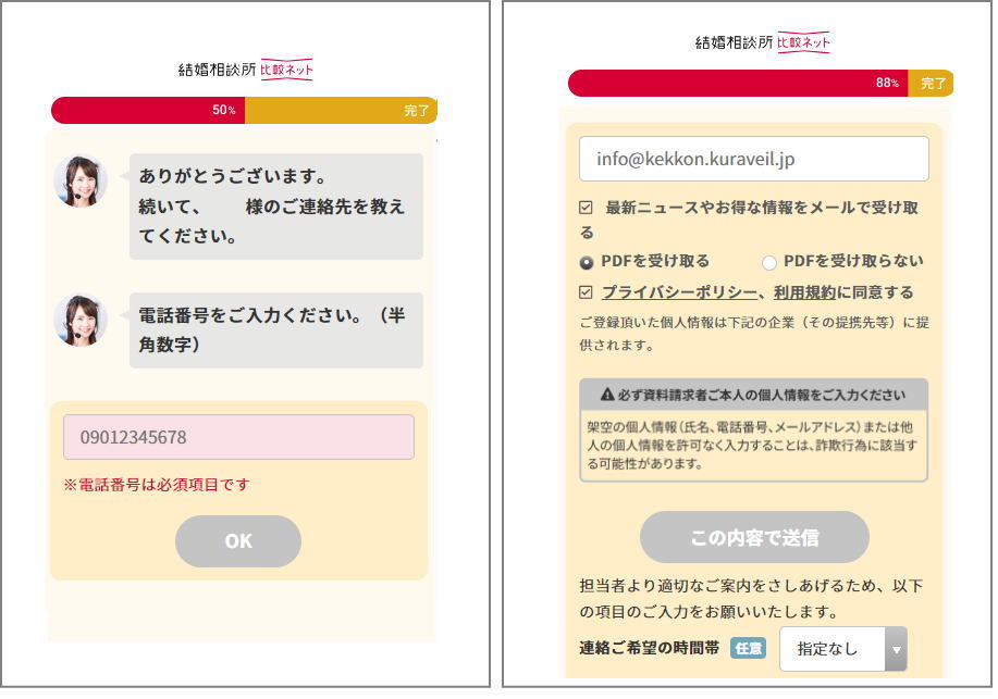 ※入力した個人情報は、送られてくる結婚相談所と共有されます。